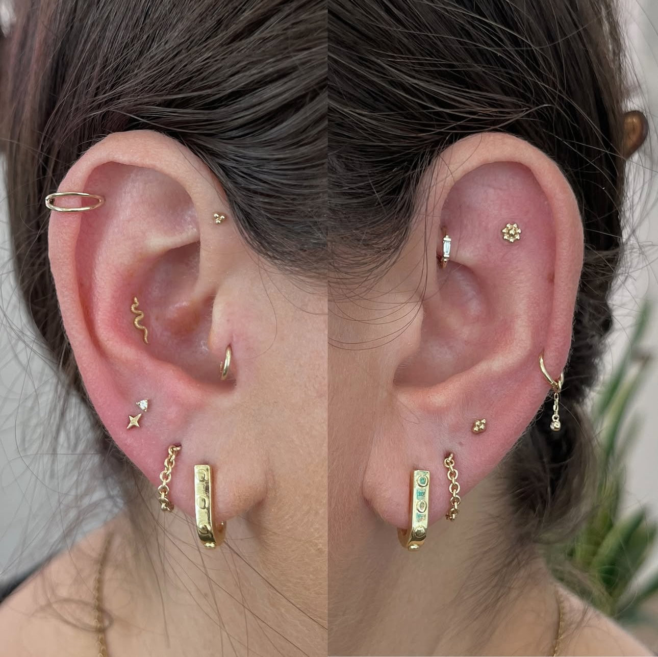 Hypoallergenic, nickel-safe 14k yellow, white or rose gold, made for wear in piercings.