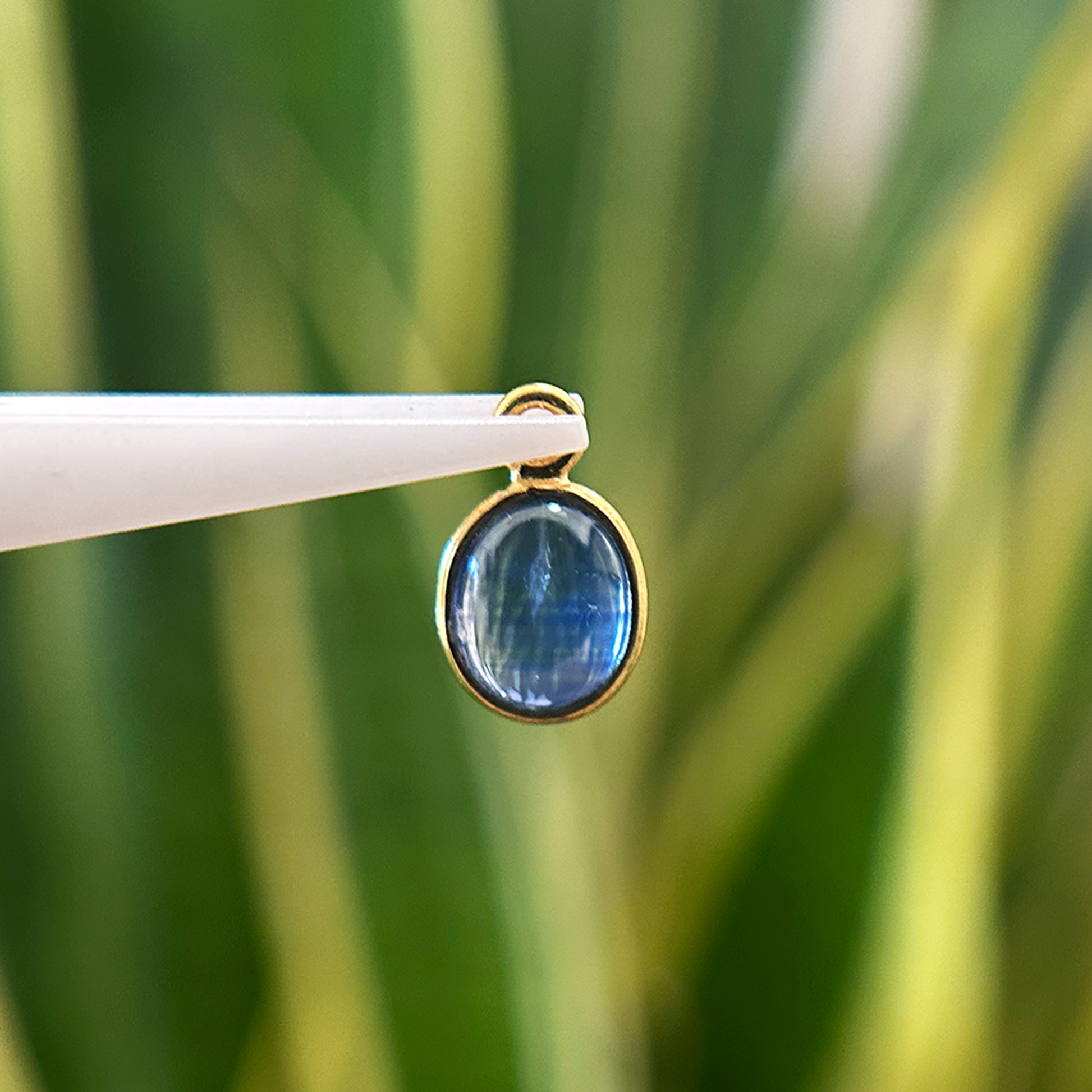 These oval banded blue sapphire cabochon charms give you both a pop of color and shine with its partial transparency.