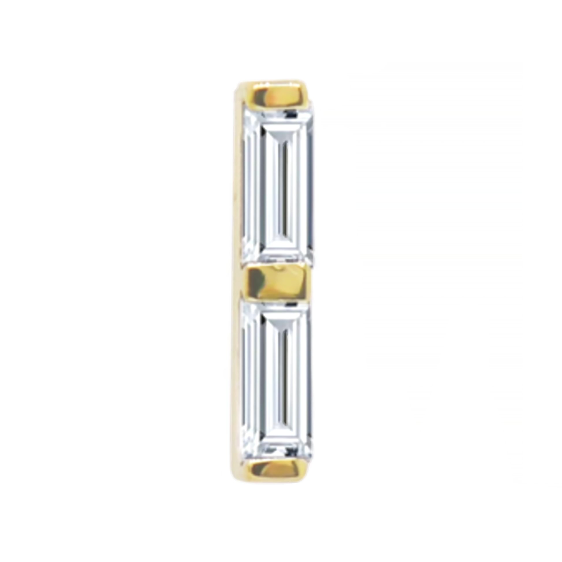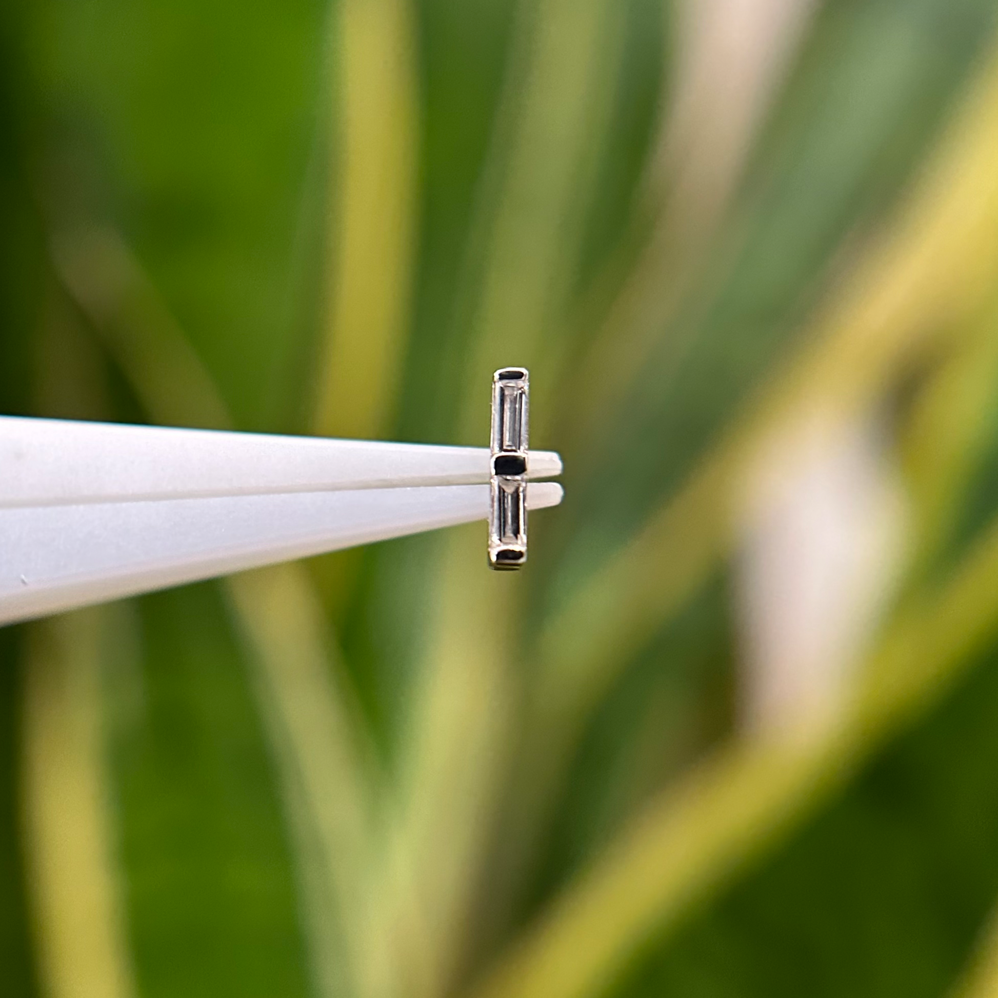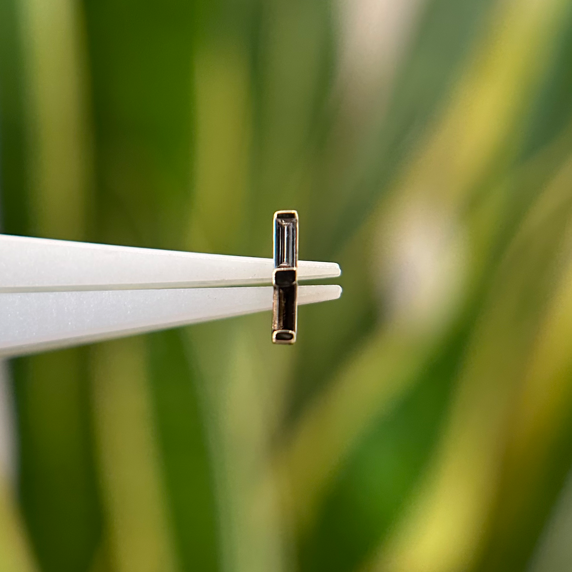 New in from BVLA! The Rosalia threadless end is not your average bar stud, composed of two baguette stones; diamonds, smoky quartz and Swiss blue topaz.