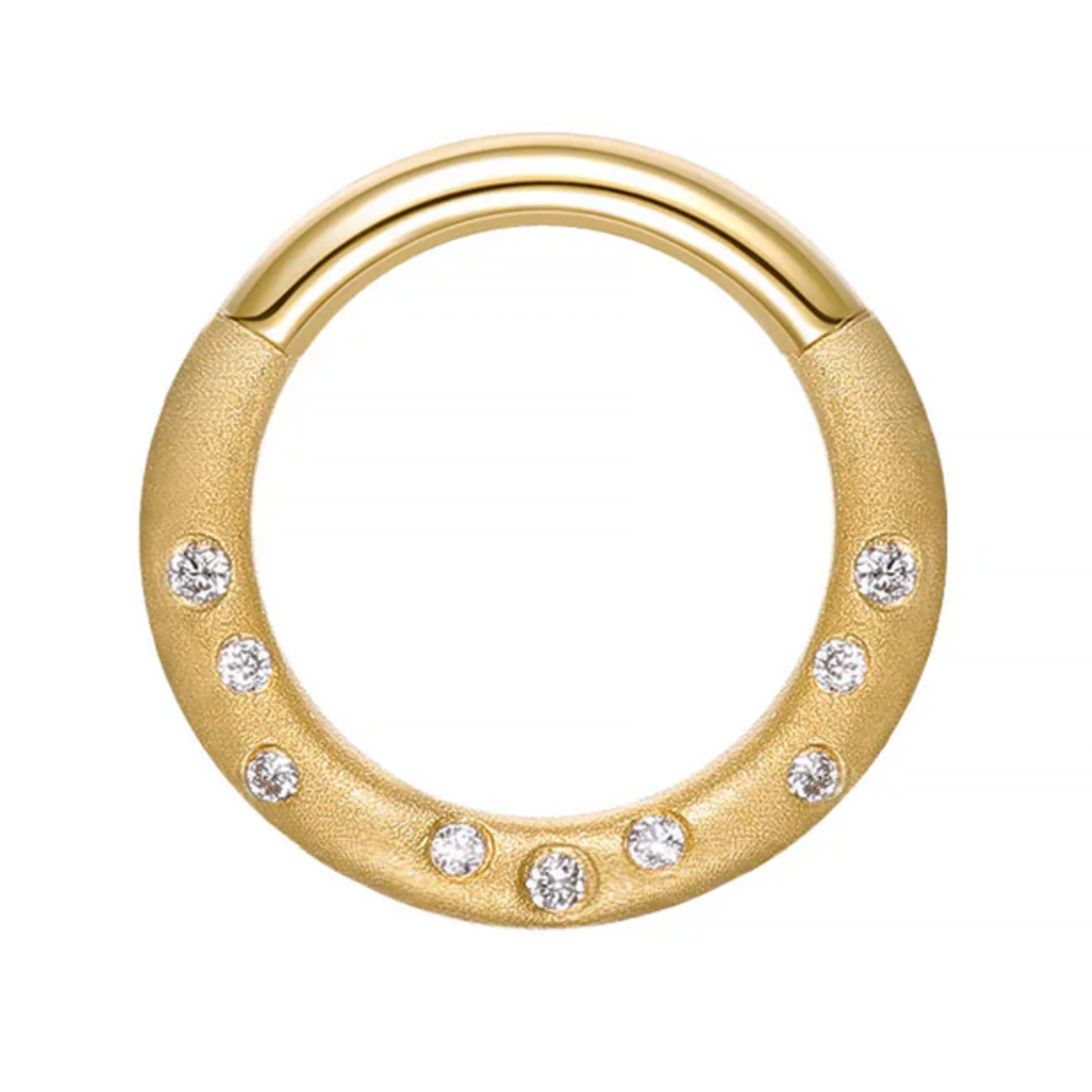 New from Modern Mood! The Essie hinge ring is matte and textured, with a constellation of diamonds on the front.