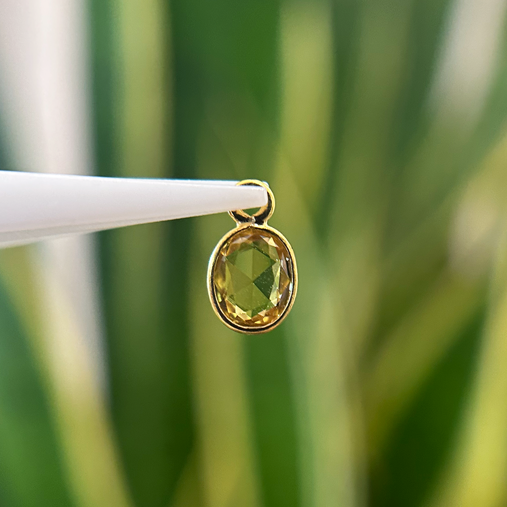 These rose cut oval yellow sapphire charms sparkle light sunlight on your ear.