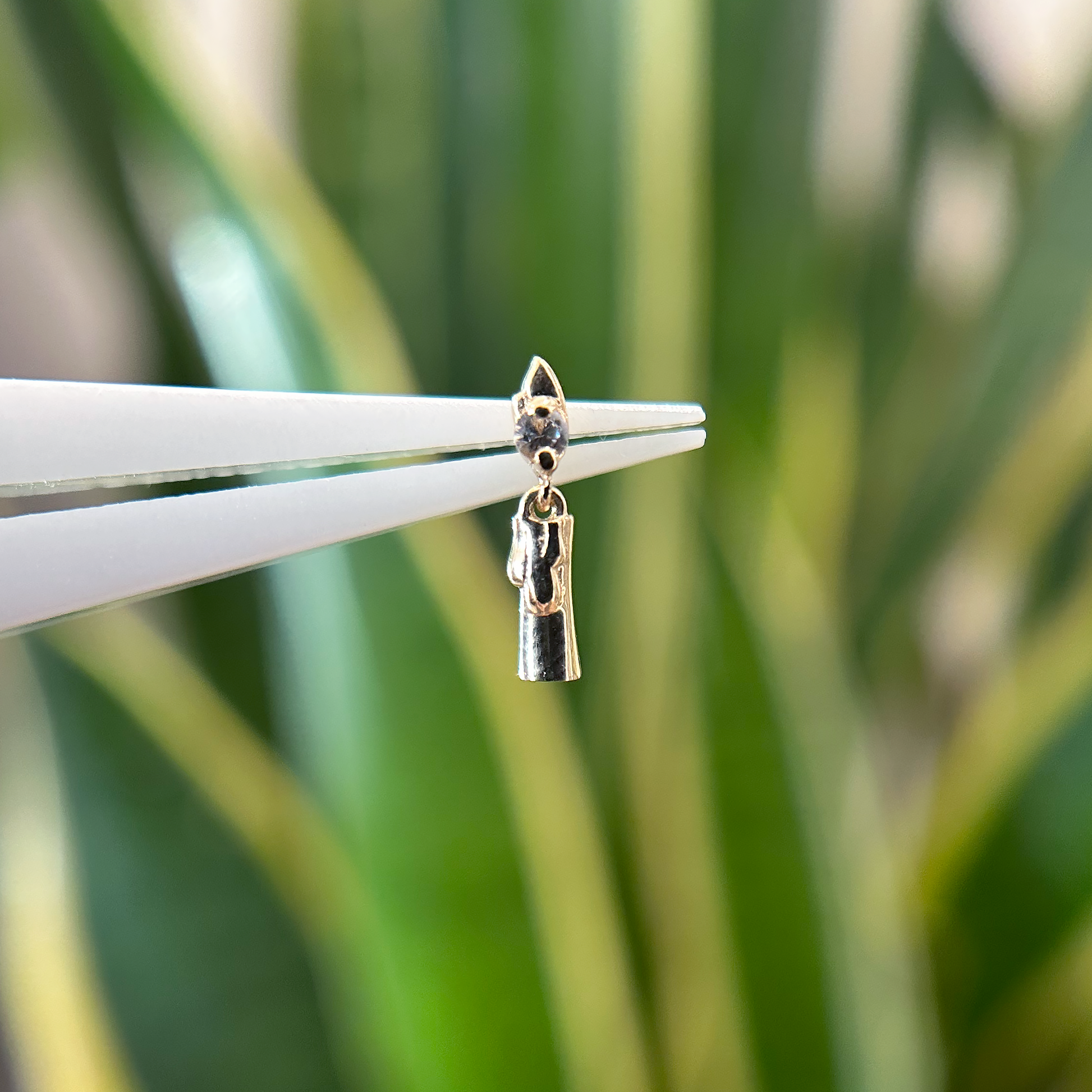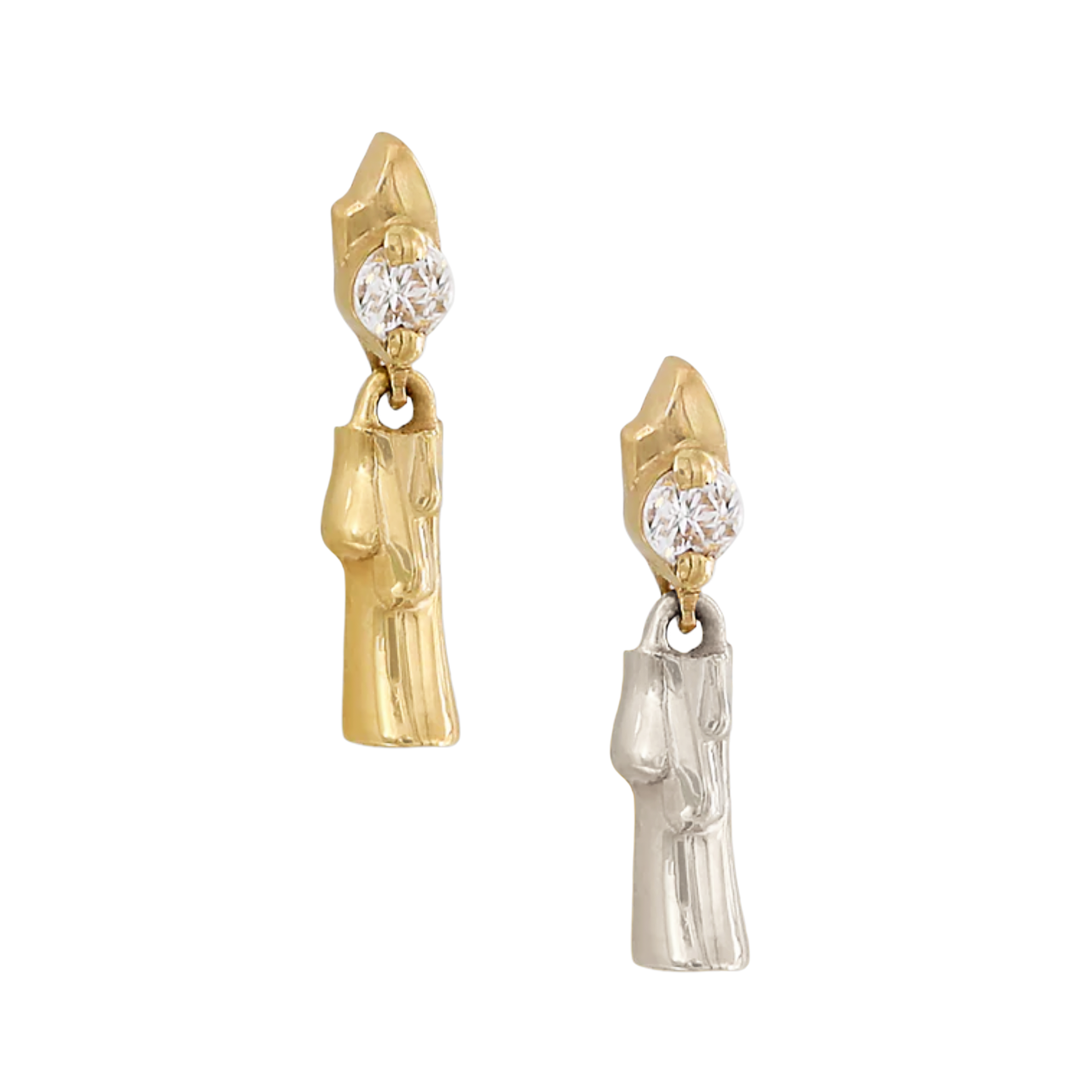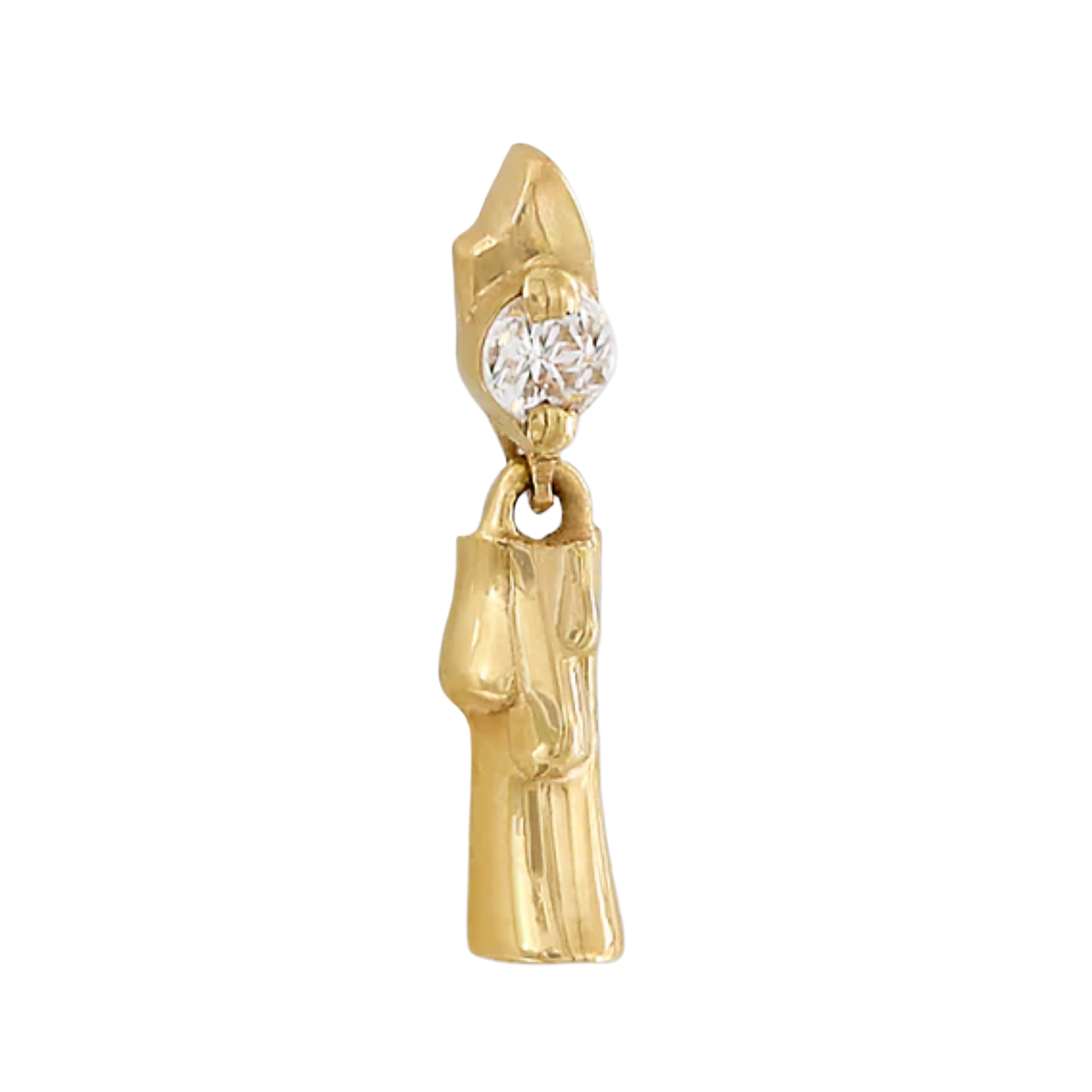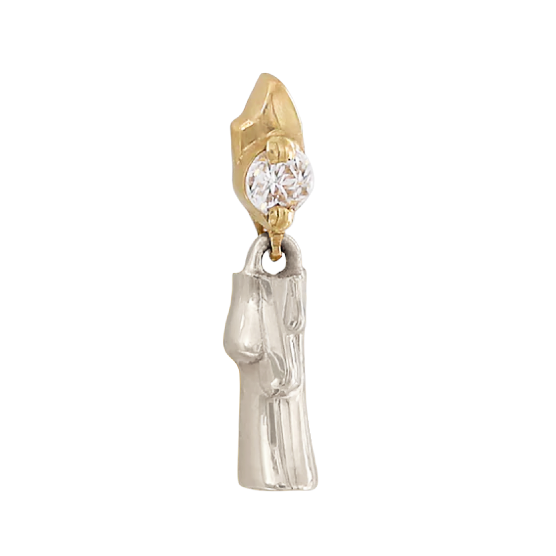New from Pupil Hall, just in time for the colder weather! The Glow threadless end comes in your choice of all yellow gold or a white gold candlestick with yellow gold flame, both of which have a white sapphire accent for extra brightness.