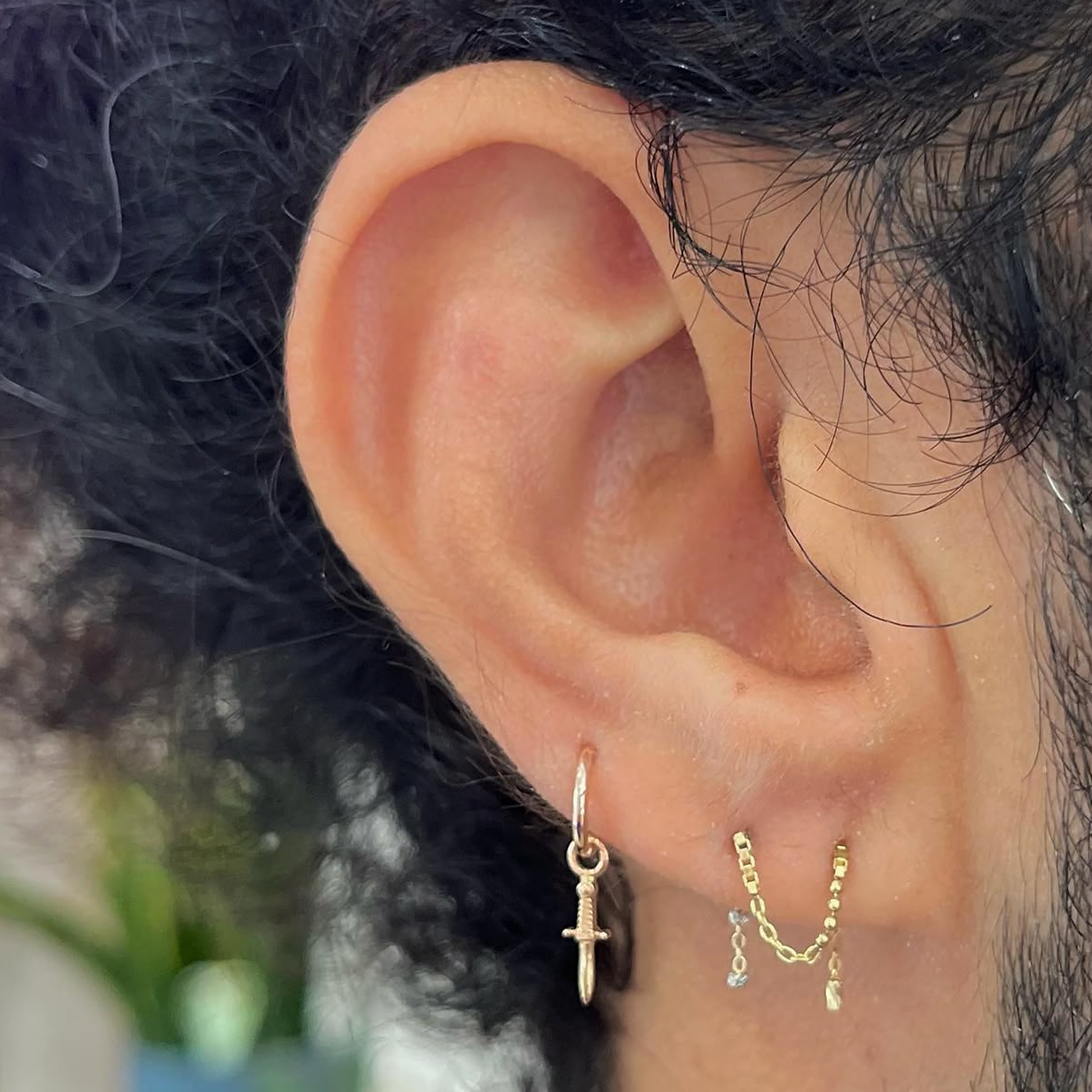 Hypoallergenic, nickel-safe 14k yellow gold, made for wear in piercings.