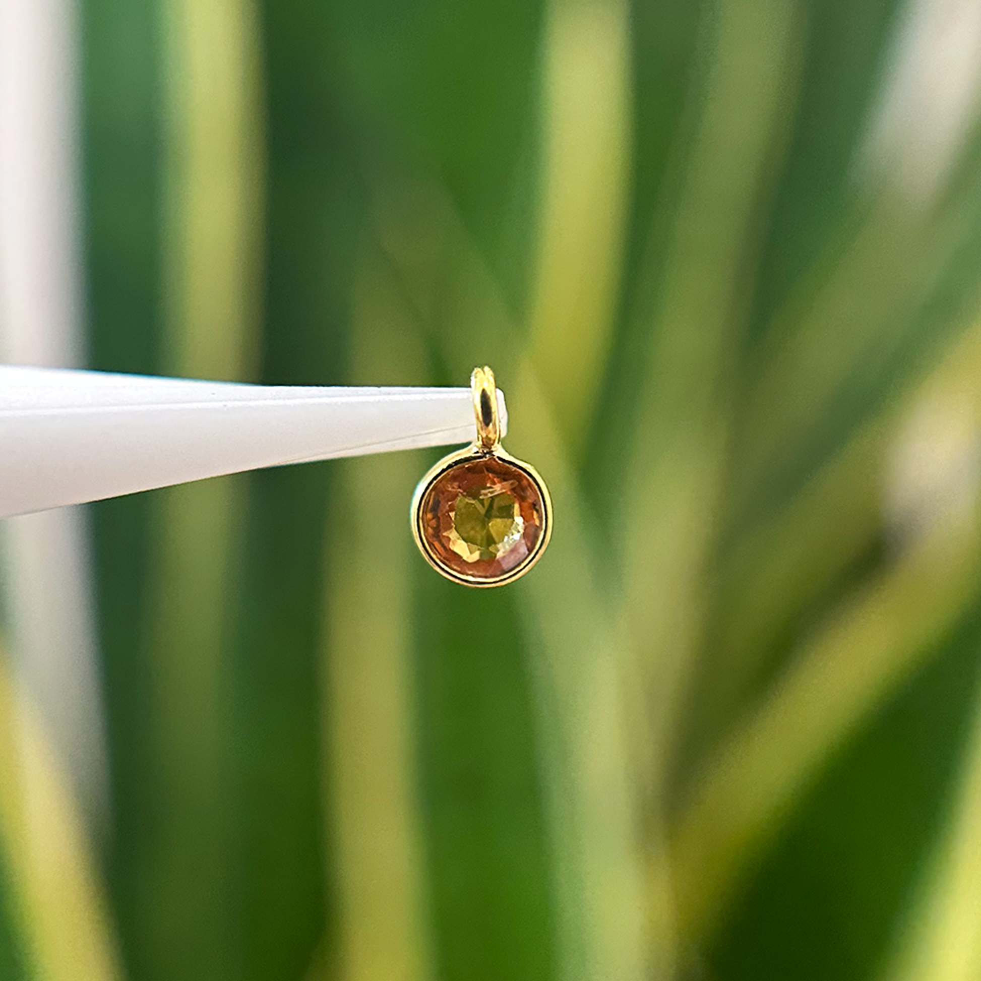 These round orange sapphire charms are the perfect pop of color accent charm across the ear, including the rook, helix, and lobe piercings on a simple ring.