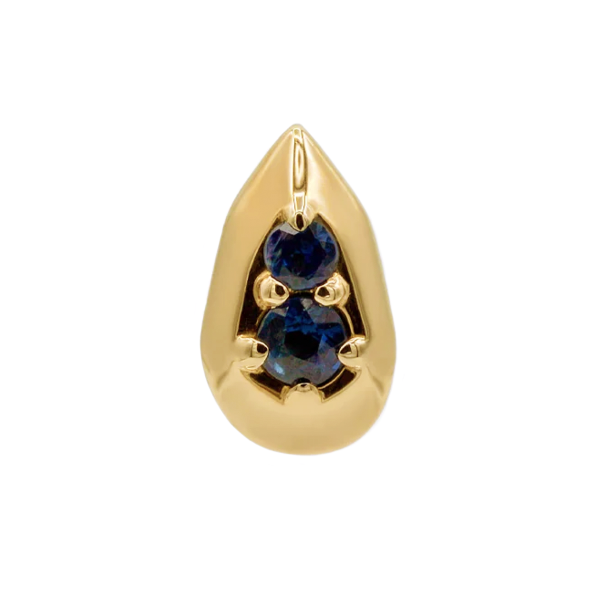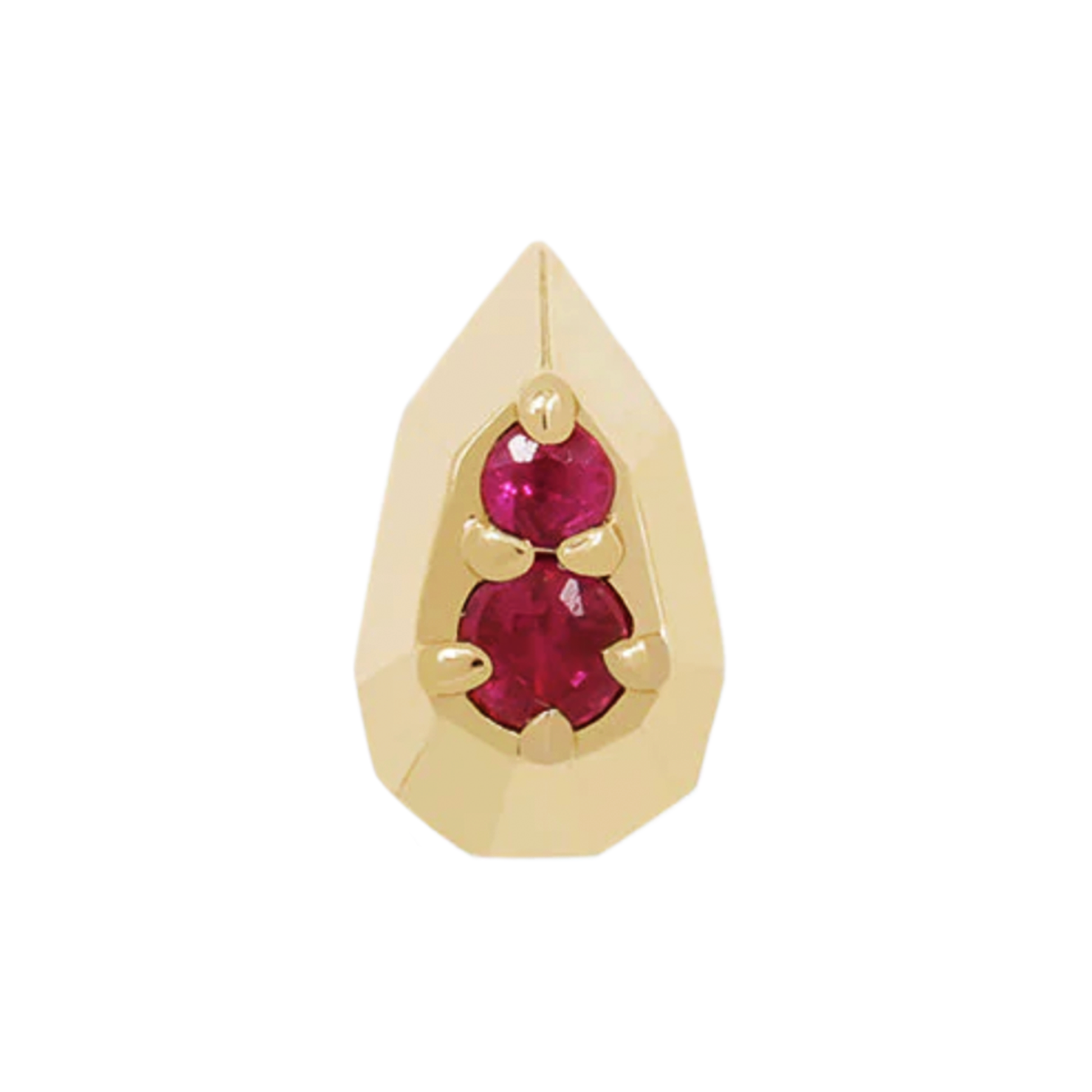 This faceted teardrop threadless end from Tether features your choice of rubies or blue sapphires.